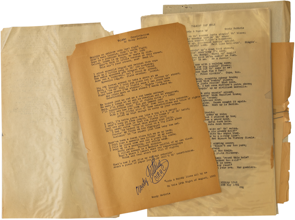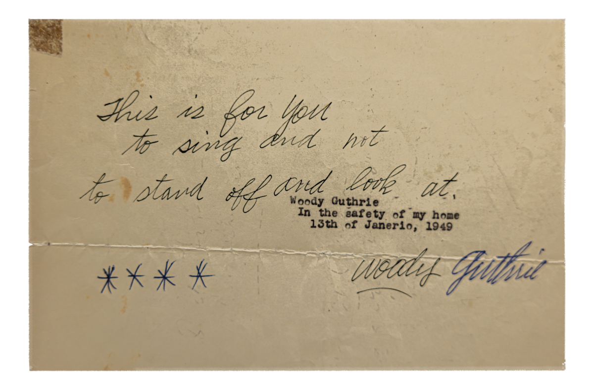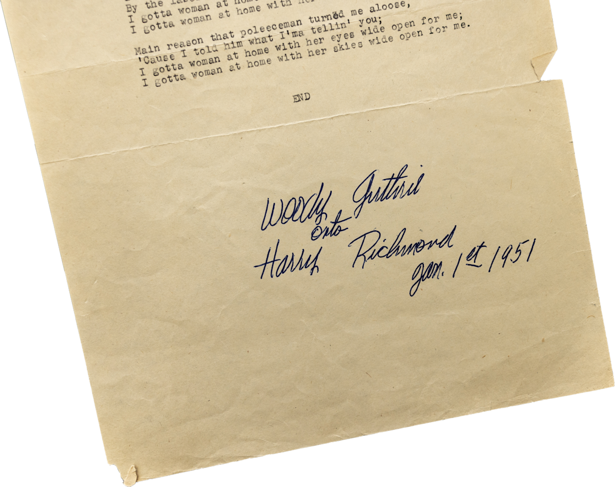 When Woody Guthrie walked into TRO’s offices in 1950, he found a musical home. Woody, who was greatly misunderstood by other publishers and record labels, had traveled throughout the country with the Almanac Singers in the 1940s, hosted a radio program with Lefty Lou, and wrote a weekly column titled "Woody Sez" for various left-leaning newspapers.