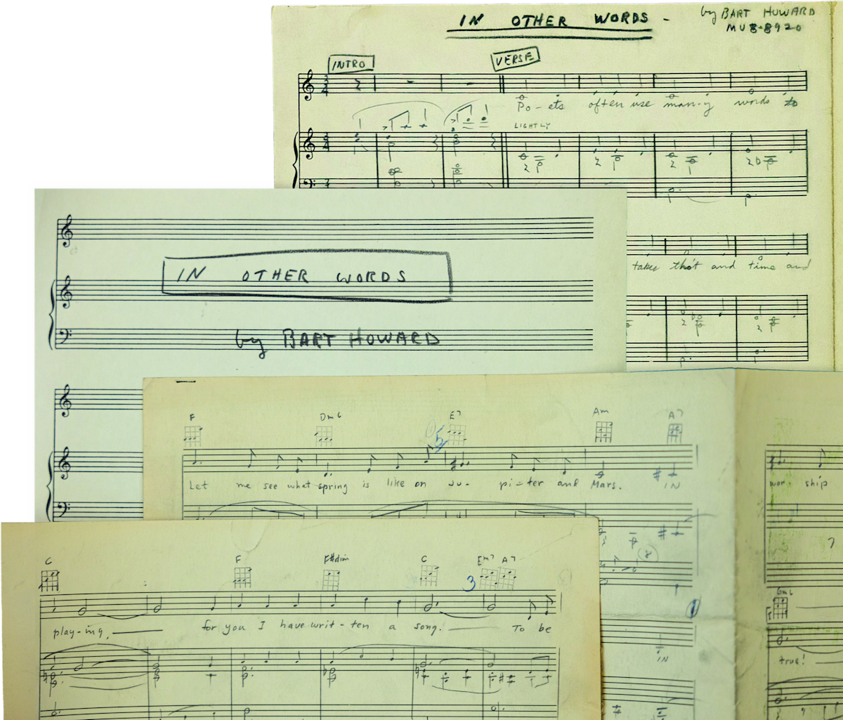 By the mid-1950s, clubs in New York were transitioning from folk and blues to jazz and cabaret. Bart Howard was a pianist and songwriter who had written songs in the larger theatrical style inspired by his idol Cole Porter, but Howie and Al had requested a simpler song format. The result was a song entitled "In Other Words." “After 20 years in the music business,” Bart said, “I finally learned to write a song in 20 minutes.” TRO took "In Other Words" to Kaye Ballard, who released the first recording on Decca in 1954. However, it was the 1956 performance by Peggy Lee on the Ed Sullivan Show that made the song a hit.
