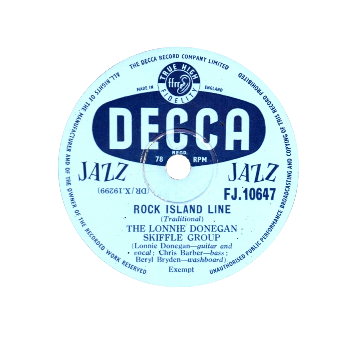 Skiffle music, a British interpretation of traditional folk music, enjoyed major popularity in the UK, and British singer-songwriter Lonnie Donegan and His Skiffle Group are credited with creating the new sound with his hit recordings of the Lead Belly songs "Rock Island Line" and "Midnight Special." Recorded in 1954, "Rock Island Line" crossed the Atlantic and reached No. 8 on the US pop charts. Not only was the song a hit record on both sides of the Atlantic, but UK guitar sales rocketed due to the Skiffle music mania sweeping the country.