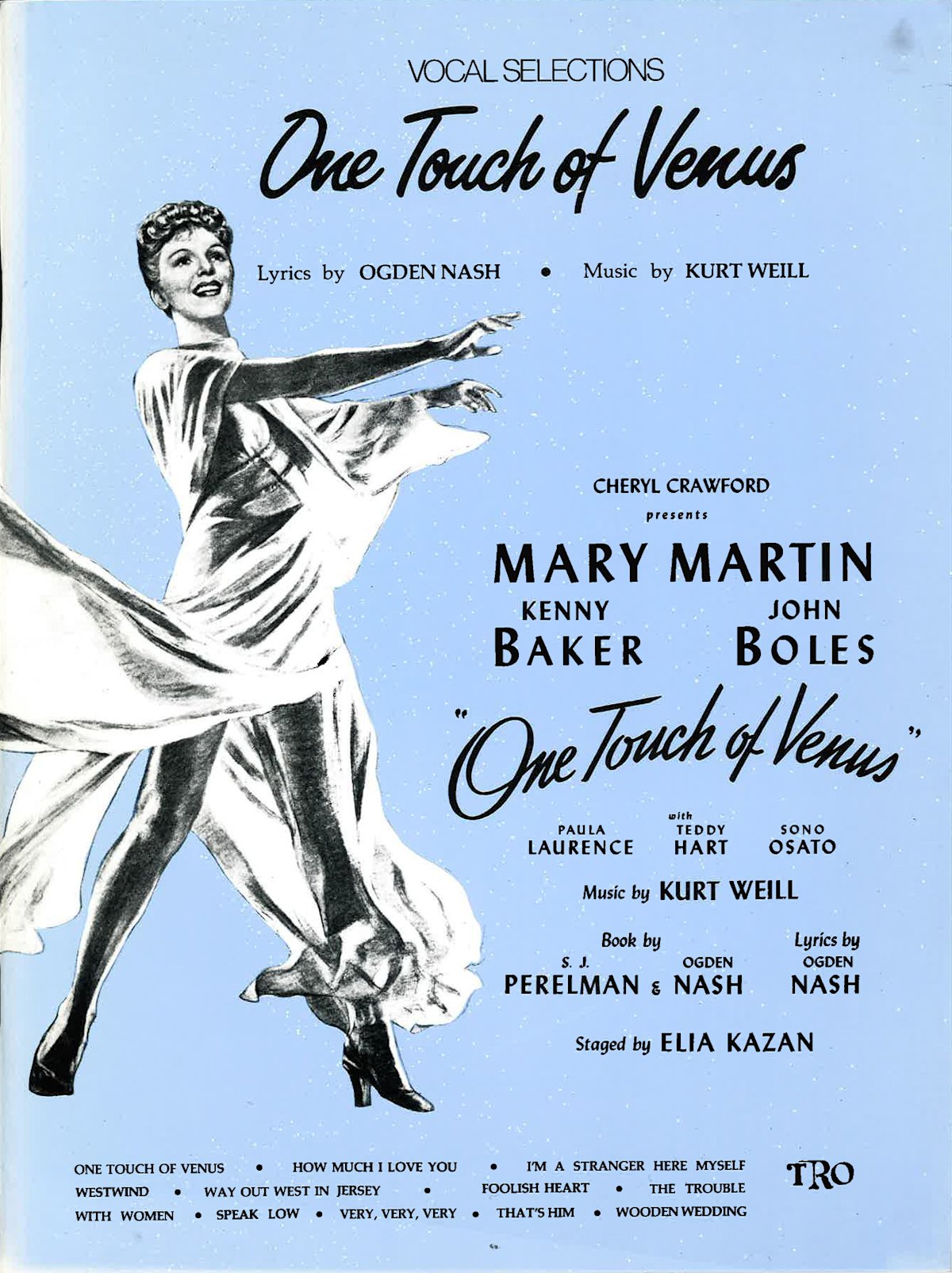 Also joining TRO was the catalog of renowned composer Kurt Weill. Weill had fled Nazi Germany in the 1930’s, settling in New York. In addition to his vast catalog of serious music, he also composed scores for film and stage musicals including Johnny Johnson, One Touch of Venus, Lady in the Dark, Knickerbocker Holiday and Street Scene, for which he won the inaugural Tony Award for Best Original Score in 1947. Kurt Weill suddenly passed in 1950, and his widow Lotte Lenya brought the renewal rights to TRO. The Weill catalog includes many iconic standards including "Speak Low," "Lost in the Stars," "My Ship" and "September Song."