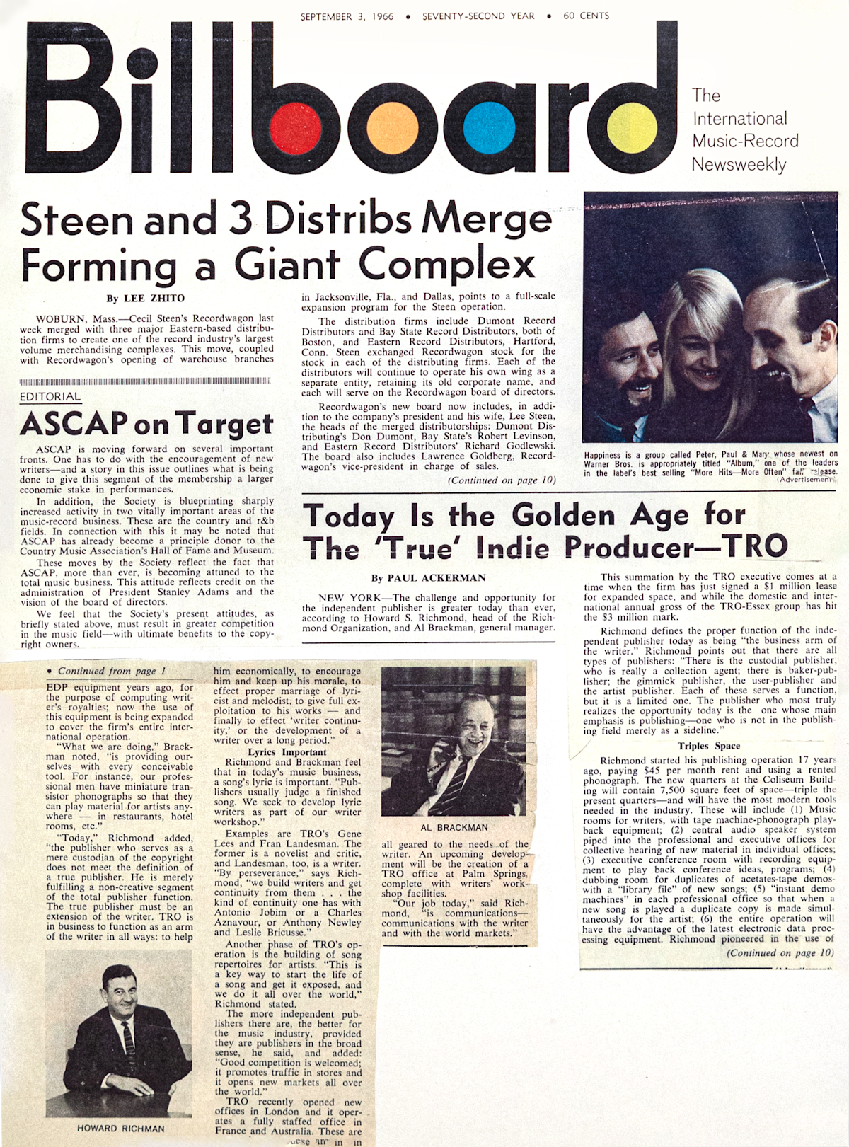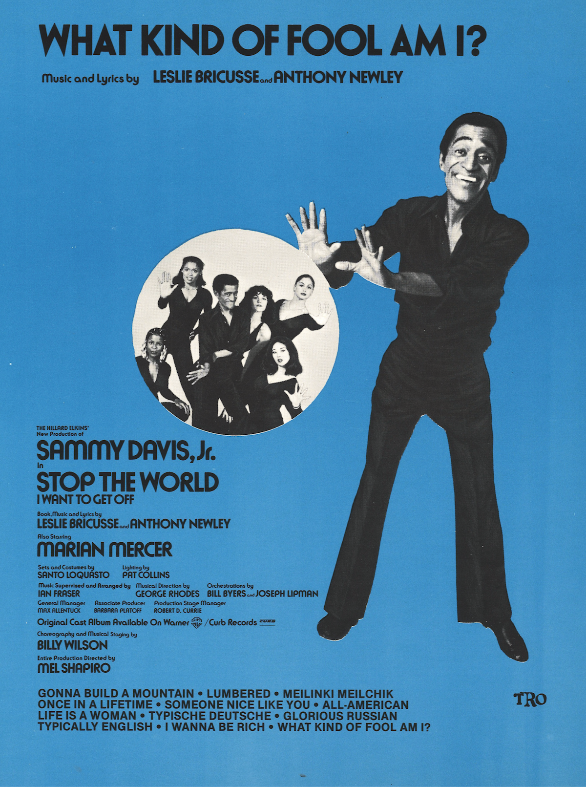 In the early 60s, TRO began working with the top theater talent of the day in London and New York City. Anthony Newley and Leslie Bricusse signed with Essex in 1960 and began their legendary collaboration. Working out of Beatrice Lillie’s New York City apartment, the pair wrote the musical "Stop the World—I Want to Get Off," their debut musical, which opened on the West End in 1961 and at the Shubert Theater on Broadway in 1962. A film version of the musical was released by Warner Bros. in 1966. The score produced the hit songs "Gonna Build a Mountain" and "What Kind of Fool Am I," which went to No. 17 on the pop charts with a recording by Sammy Davis Jr. Traditionally, songs in Broadway shows were not released until after the first performance; however, Howie had decided to release the songs prior to opening.