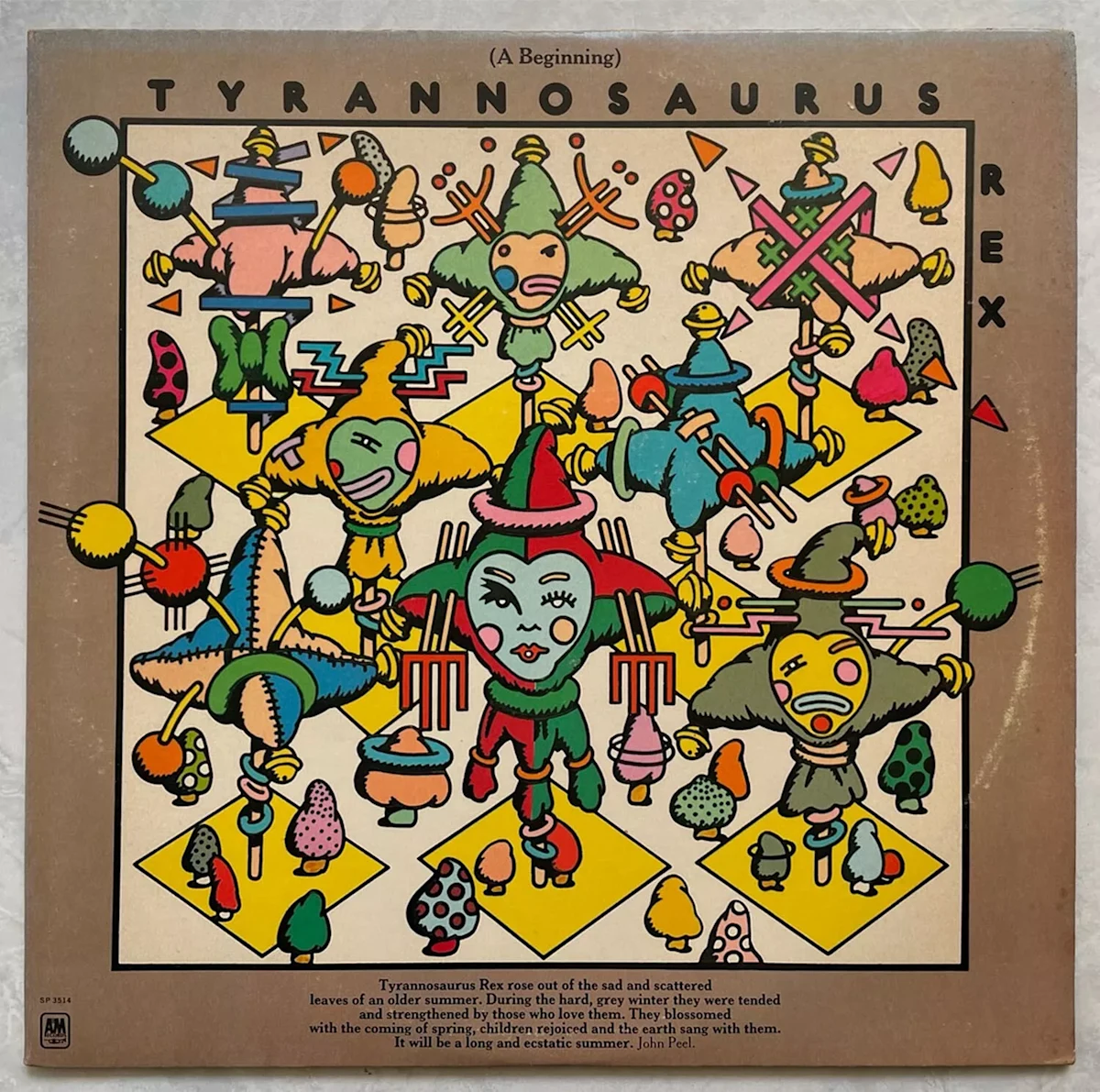 English rock band Tyrannosaurus Rex, abbreviated T. Rex, was formed in 1967 by singer-songwriter and guitarist Marc Bolan and released its first single, "The Wizard." In 1967, while on tour with The Who, Marc wrote and recorded "Desdemona"; however, he left the tour after four months to begin writing for his next project. "My People Were Fair and Had Sky in Their Hair... But Now They’re Content..." was released in July 1968. It was the first to be produced by long-time Bolan collaborator Tony Visconti, who would go on to helm nearly all of Bolan’s subsequent work.