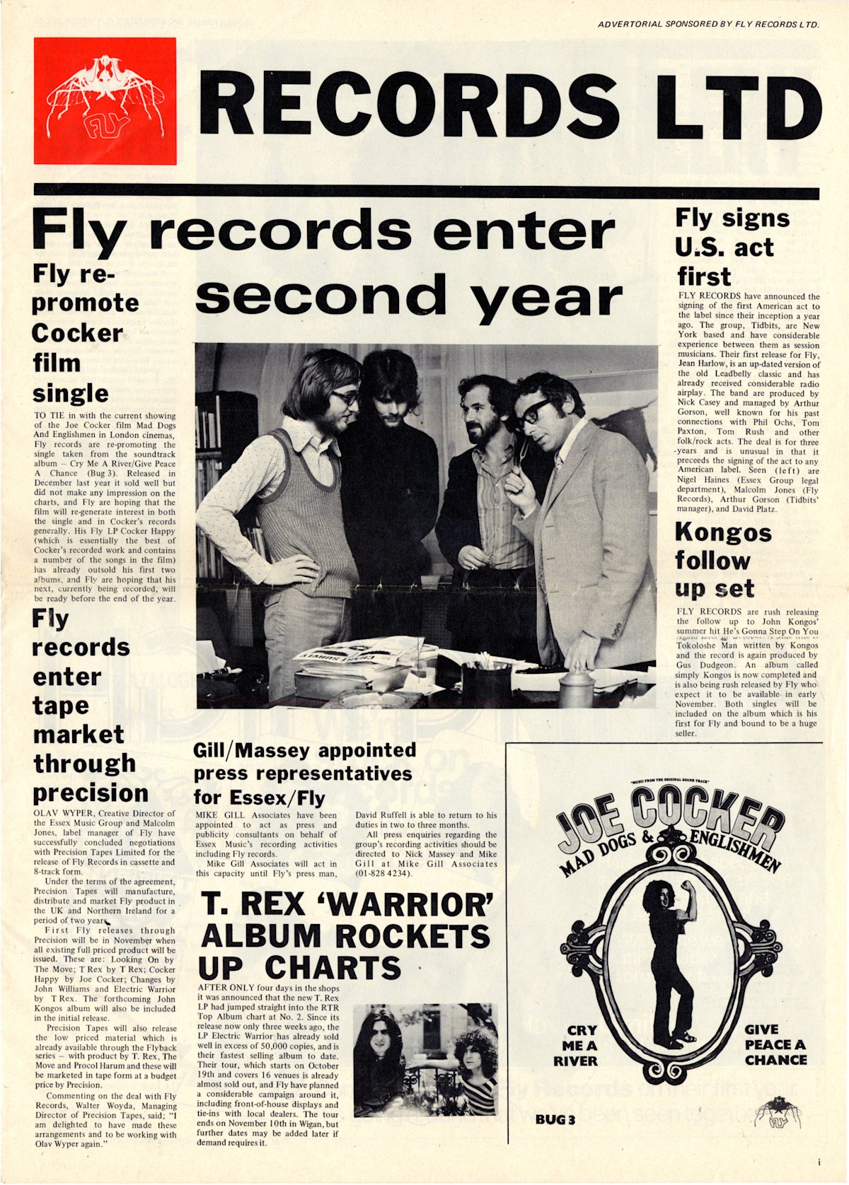With the publishing catalog flourishing, Essex UK opened its own studio to record and capture the writers' phenomenal talent. The Essex label, Straight Ahead Productions, recorded and charted such great acts as Joe Cocker, Marc Bolan and T. Rex, Procol Harum, and The Move.