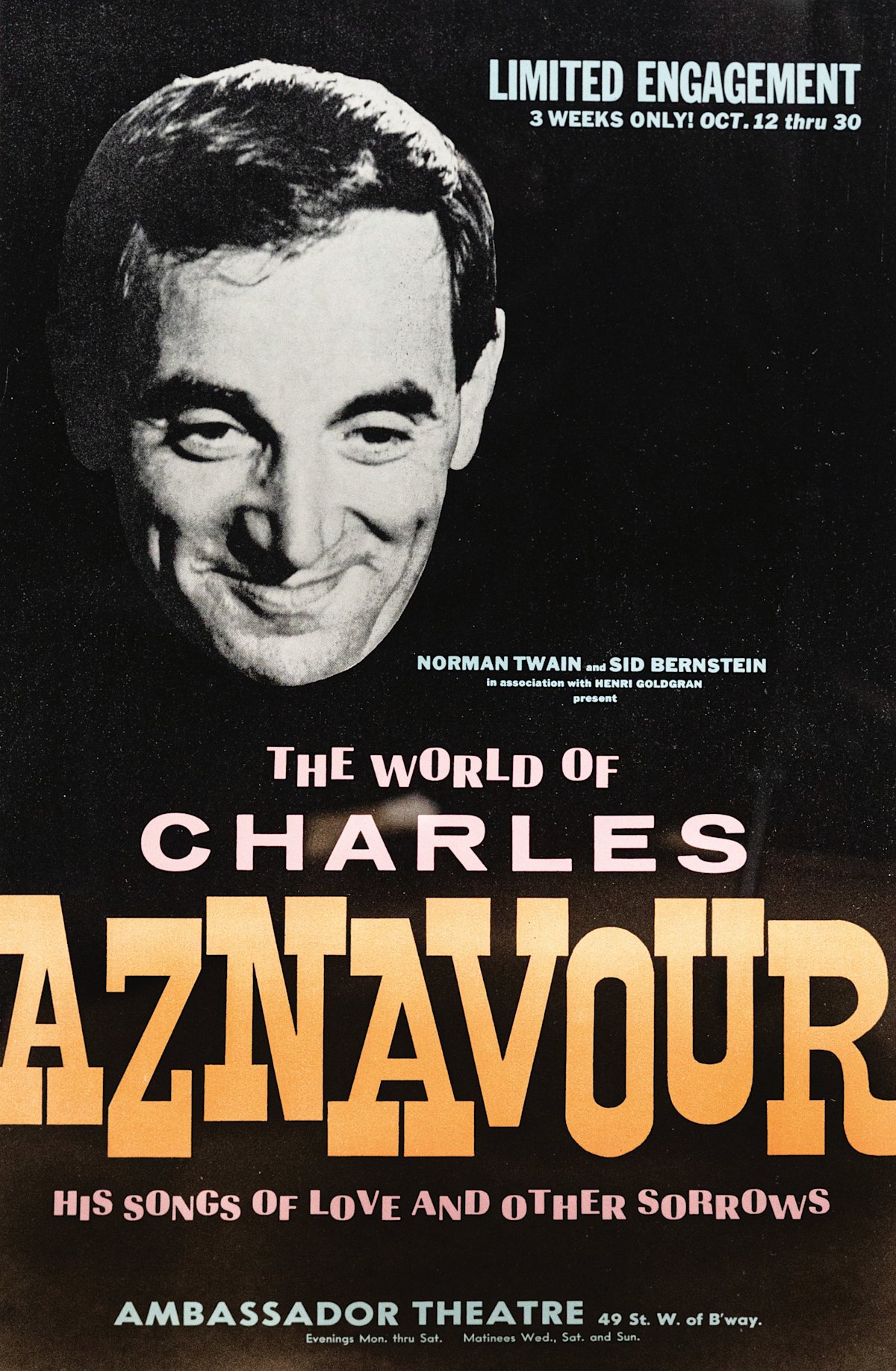 When Bob Dylan was asked who some of his favorite musicians were, he stated, “I like Charles Aznavour a lot. I saw him in sixty-something at Carnegie Hall, and he just blew my brains out.”